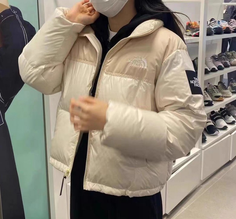 노스페이스 여성 유광 노벨티 눕시 RDS 다운 자켓 패딩85 쇼트 베이지