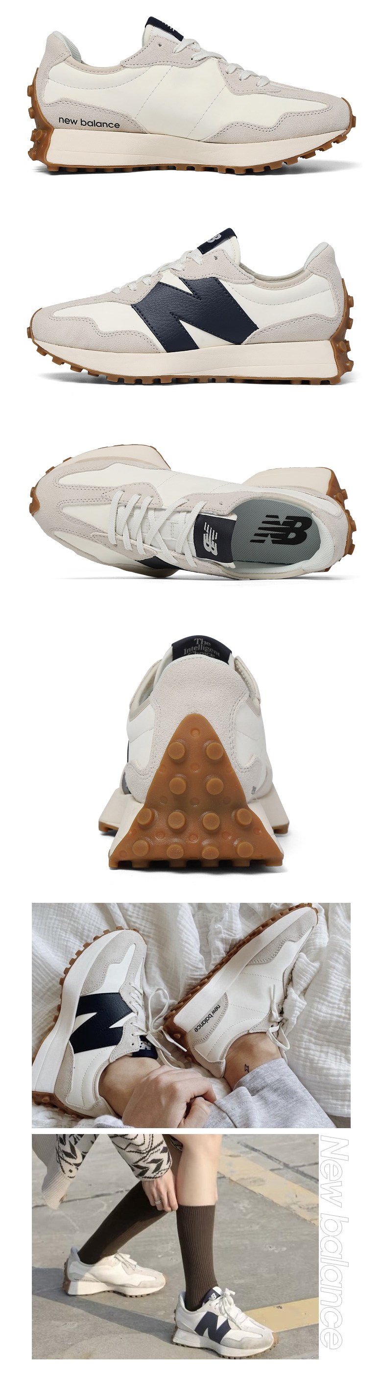 뉴발란스 327 우먼스 레더 화이트 네이비 WS327KB